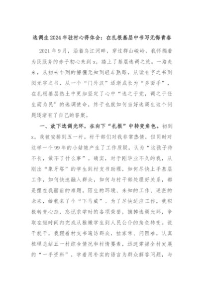 【七哥公文】2024年:选调生2024年驻村心得体会:在扎根基层中书写无悔青春+更多免费公文+VX:QiGeGongWen2024