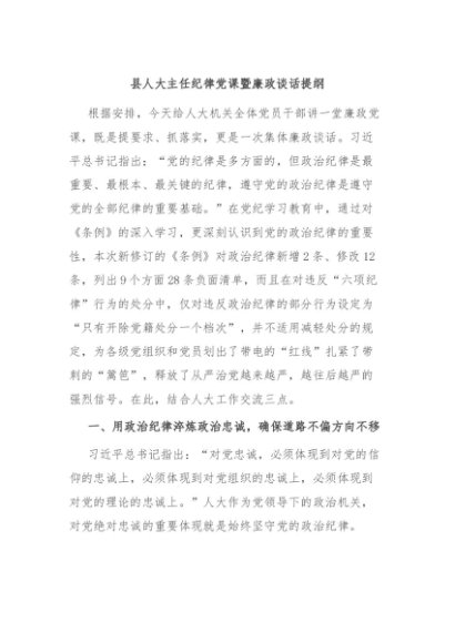 / 【七哥公文】2024年:县人大主任纪律党课暨廉政谈话提纲+更多免费公文+VX:QiGeGongWen2024