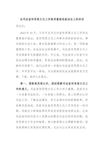 / 【七哥公文】2024年:在司法宣传思想文化工作高质量推进座谈会上的讲话+更多免费公文+VX:QiGeGongWen2024