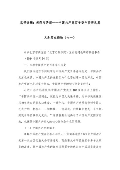 【七哥公文】2024年:党课讲稿:光荣与梦想——中国共产党百年奋斗的历史意义和历史经验(七一)+更多免费公文+VX:QiGeGongWen2024