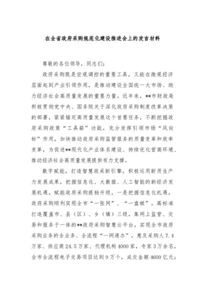 / 【七哥公文】2024年:在全省政府采购规范化建设推进会上的发言材料+更多免费公文+VX:QiGeGongWen2024