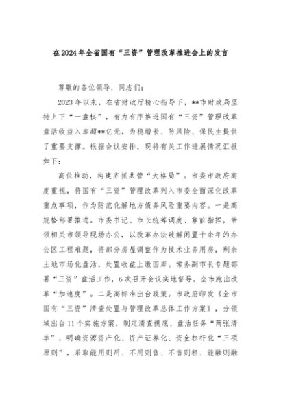 【七哥公文】2024年:在2024年全省国有“三资”管理改革推进会上的发言+更多免费公文+VX:QiGeGongWen2024