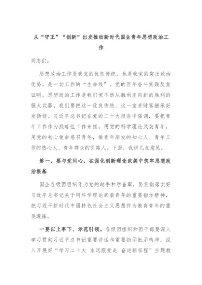 【七哥公文】2024年:从“守正”“创新”出发推动新时代国企青年思想政治工作+更多免费公文+VX:QiGeGongWen2024