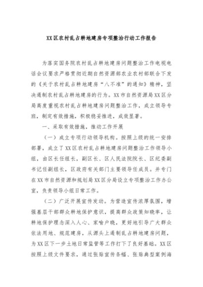 / 【七哥公文】2024年:XX区农村乱占耕地建房专项整治行动工作报告+更多免费公文+VX:QiGeGongWen2024