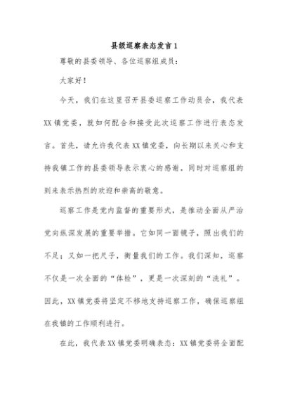 【七哥公文】2024年:县级巡察表态发言+更多免费公文+VX:QiGeGongWen2024