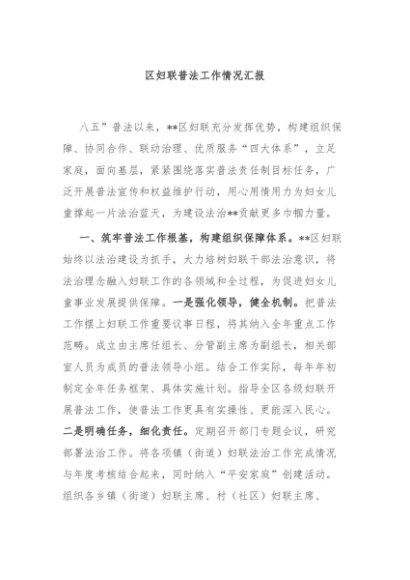 / 【七哥公文】2024年:区妇联普法工作情况汇报+更多免费公文+VX:QiGeGongWen2024