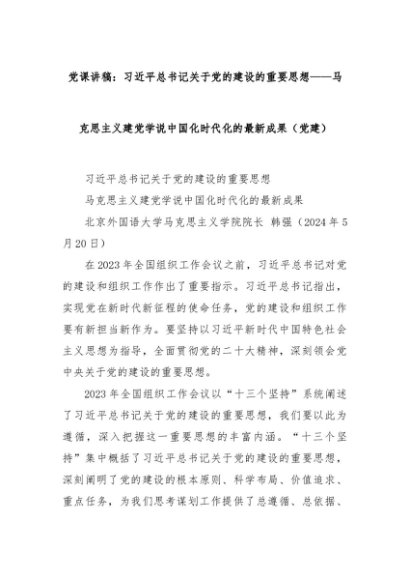 【七哥公文】2024年:党课讲稿:习近平总书记关于党的建设的重要思想——马克思主义建党学说中国化时代化的最新成果(党建)+更多免费公文+VX:QiGeGongWen2024