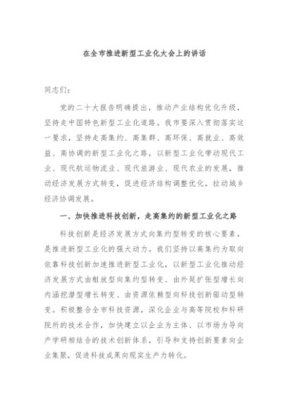 / 【七哥公文】2024年:在全市推进新型工业化大会上的讲话+更多免费公文+VX:QiGeGongWen2024