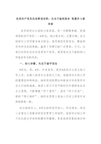 【七哥公文】2024年:优秀共产党员先进事迹材料:矢志不渝担使命 笔墨丹心谱华章+更多免费公文+VX:QiGeGongWen2024