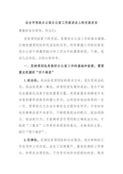 / 【七哥公文】2024年:在全市党政办公室办公室工作座谈会上的交流发言+更多免费公文+VX:QiGeGongWen2024