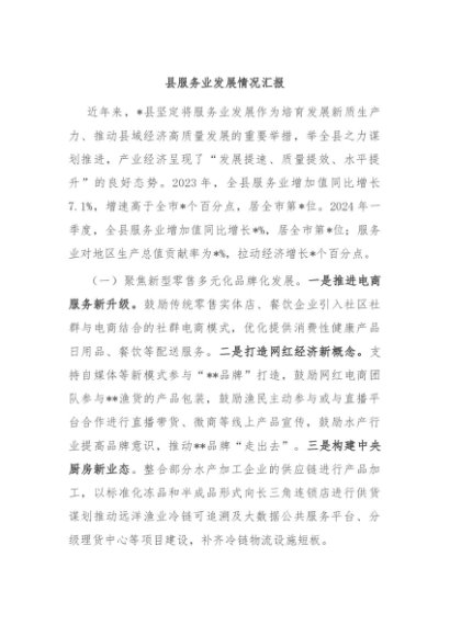 / 【七哥公文】2024年:县服务业发展情况汇报+更多免费公文+VX:QiGeGongWen2024