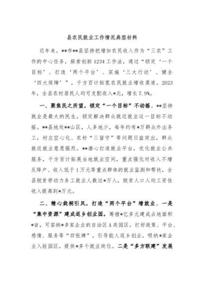 / 【七哥公文】2024年:县农民就业工作情况典型材料+更多免费公文+VX:QiGeGongWen2024