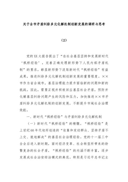 【七哥公文】2024年:关于全市矛盾纠纷多元化解机制创新发展的调研与思考(2)+更多免费公文+VX:QiGeGongWen2024