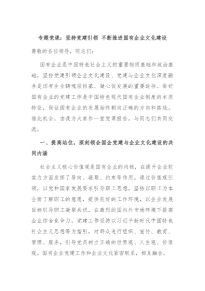 / 【七哥公文】2024年:专题党课:坚持党建引领 不断推进国有企业文化建设+更多免费公文+VX:QiGeGongWen2024