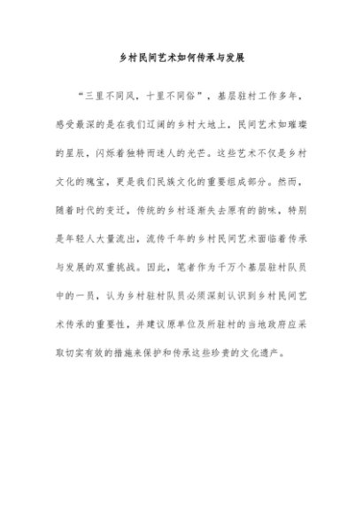 【七哥公文】2024年:乡村民间艺术如何传承和发展+更多免费公文+VX:QiGeGongWen2024