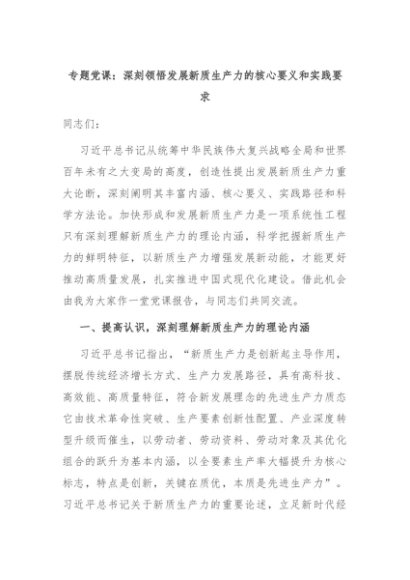 【七哥公文】2024年:专题党课:深刻领悟发展新质生产力的核心要义和实践要求+更多免费公文+VX:QiGeGongWen2024