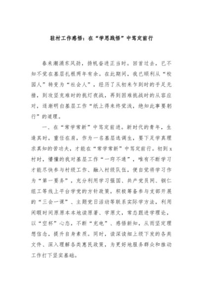 / 【七哥公文】2024年:驻村工作感悟:在“学思践悟”中笃定前行+更多免费公文+VX:QiGeGongWen2024