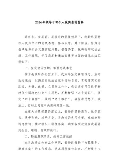 / 【七哥公文】2024年:2024年领导干部个人现实表现材料+更多免费公文+VX:QiGeGongWen2024