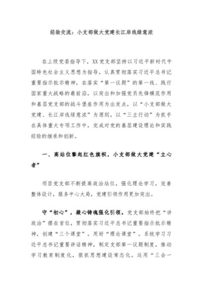 / 【七哥公文】2024年:经验交流:小支部做大党建长江岸线绿意浓 (1)+更多免费公文+VX:QiGeGongWen2024