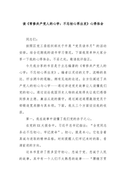 / 【七哥公文】2024年:读《常修共产党人的心学:不忘初心再出发》心得体会+更多免费公文+VX:QiGeGongWen2024