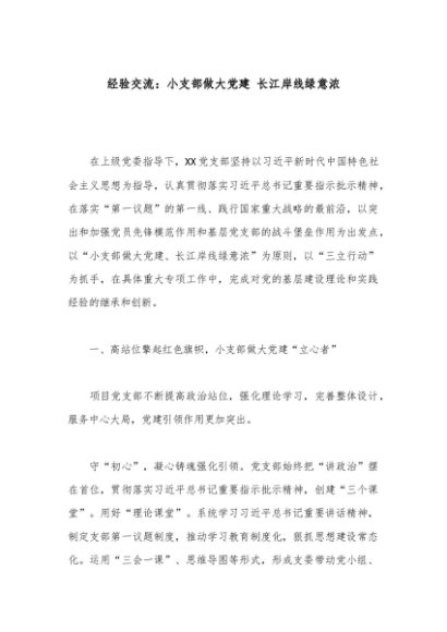 / 【七哥公文】2024年:经验交流:小支部做大党建长江岸线绿意浓+更多免费公文+VX:QiGeGongWen2024