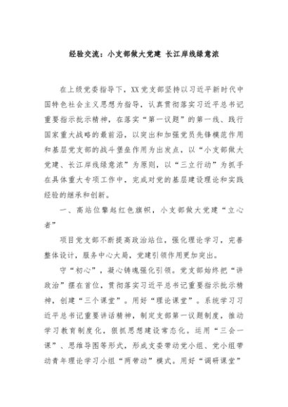 / 【七哥公文】2024年:经验交流:小支部做大党建 长江岸线绿意浓+更多免费公文+VX:QiGeGongWen2024