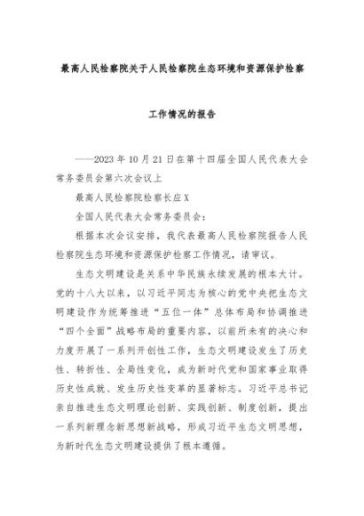 【七哥公文】2024年:最高人民检察院关于人民检察院生态环境和资源保护检察工作情况的报告+更多免费公文+VX:QiGeGongWen2024