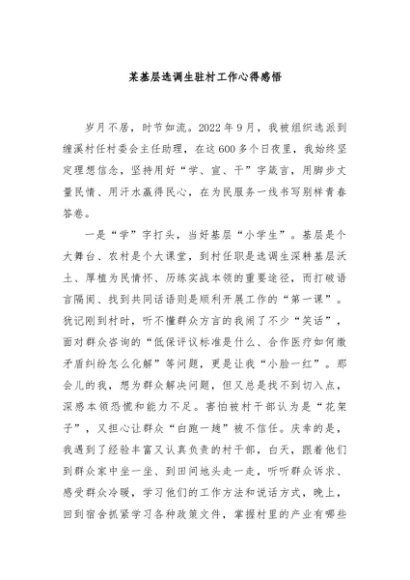 / 【七哥公文】2024年:某基层选调生驻村工作心得感悟+更多免费公文+VX:QiGeGongWen2024