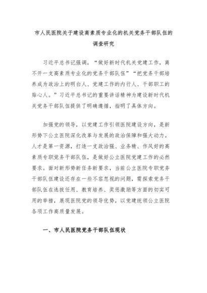 【七哥公文】2024年:市人民医院关于建设高素质专业化的机关党务干部队伍的调查研究+更多免费公文+VX:QiGeGongWen2024