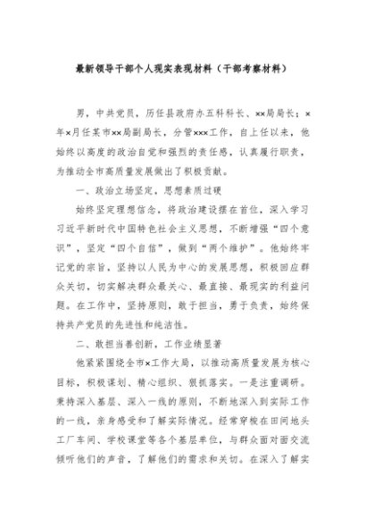 / 【七哥公文】2024年:最新领导干部个人现实表现材料(干部考察材料)+更多免费公文+VX:QiGeGongWen2024
