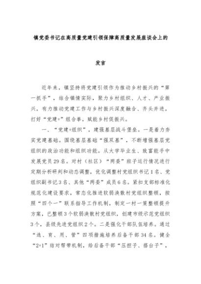 【七哥公文】2024年:镇党委书记在高质量党建引领保障高质量发展座谈会上的发言+更多免费公文+VX:QiGeGongWen2024