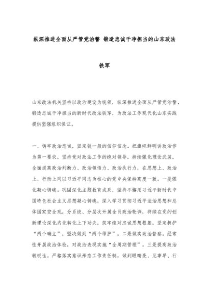 【七哥公文】2024年:纵深推进全面从严管党治警锻造忠诚干净担当的山东政法铁军+更多免费公文+VX:QiGeGongWen2024