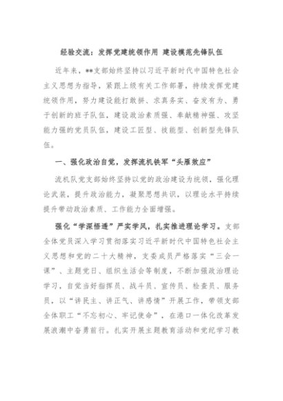 / 【七哥公文】2024年:经验交流:发挥党建统领作用 建设模范先锋队伍+更多免费公文+VX:QiGeGongWen2024