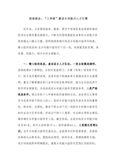 / 【七哥公文】2024年:经验做法:“三举措”激活乡村振兴人才引擎+更多免费公文+VX:QiGeGongWen2024