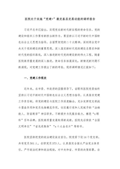 / 【七哥公文】2024年:医院关于实施“党建+”激发基层发展动能的调研报告+更多免费公文+VX:QiGeGongWen2024