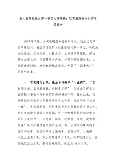 【七哥公文】2024年:县人社局派驻村第一书记心得感悟:以真情践使命以实干促振兴+更多免费公文+VX:QiGeGongWen2024