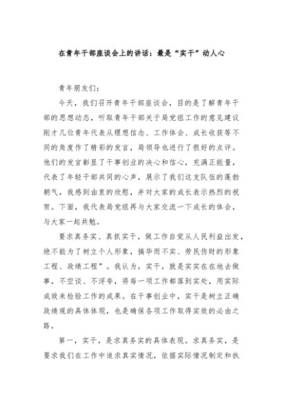 / 【七哥公文】2024年:在青年干部座谈会上的讲话:最是“实干”动人心+更多免费公文+VX:QiGeGongWen2024