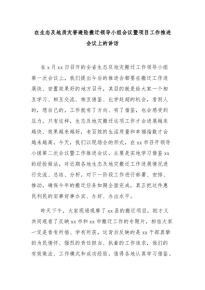 【七哥公文】2024年:在生态及地质灾害避险搬迁领导小组会议暨项目工作推进会议上的讲话+更多免费公文+VX:QiGeGongWen2024