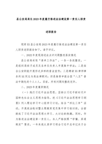 【七哥公文】2024年:县公安局局长2023年度履行推进法治建设第一责任人职责述职报告+更多免费公文+VX:QiGeGongWen2024