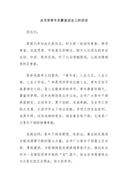 / 【七哥公文】2024年:在市局青年民警座谈会上的讲话+更多免费公文+VX:QiGeGongWen2024