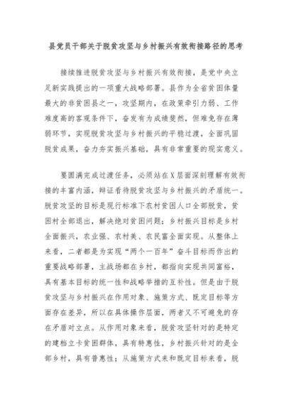 【七哥公文】2024年:县党员干部关于脱贫攻坚与乡村振兴有效衔接路径的思考+更多免费公文+VX:QiGeGongWen2024