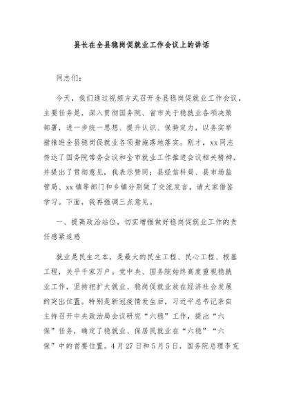 / 【七哥公文】2024年:县长在全县稳岗促就业工作会议上的讲话+更多免费公文+VX:QiGeGongWen2024