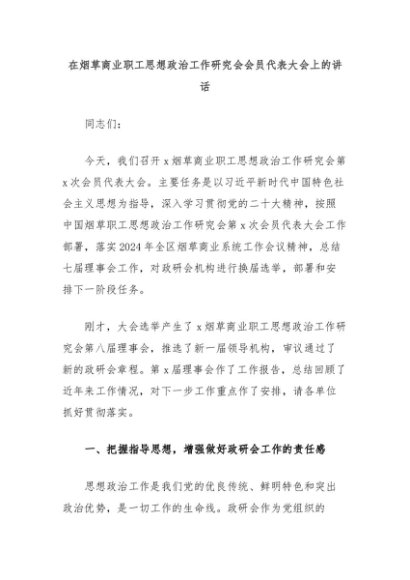 【七哥公文】2024年:在烟草商业职工思想政治工作研究会会员代表大会上的讲话 (1)+更多免费公文+VX:QiGeGongWen2024