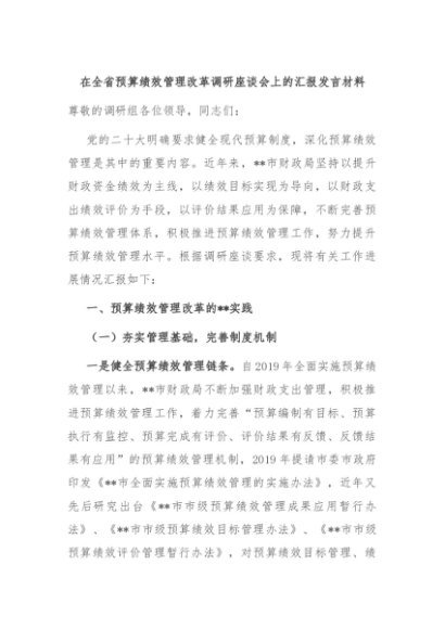 / 【七哥公文】2024年:在全省预算绩效管理改革调研座谈会上的汇报发言材料+更多免费公文+VX:QiGeGongWen2024
