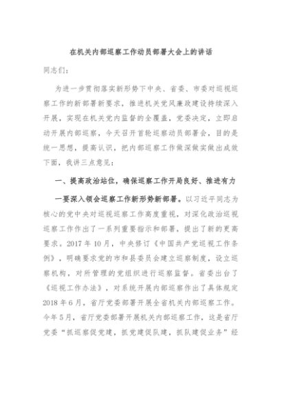 / 【七哥公文】2024年:在机关内部巡察工作动员部署大会上的讲话+更多免费公文+VX:QiGeGongWen2024