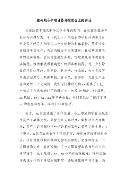 / 【七哥公文】2024年:在央地合作项目协调推进会上的讲话 (1)+更多免费公文+VX:QiGeGongWen2024
