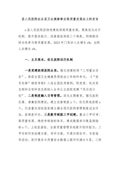 / 【七哥公文】2024年:县人民医院在全县卫生健康事业高质量发展会上的发言+更多免费公文+VX:QiGeGongWen2024