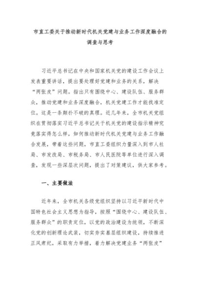 【七哥公文】2024年:市直工委关于推动新时代机关党建与业务工作深度融合的调查与思考 (1)+更多免费公文+VX:QiGeGongWen2024