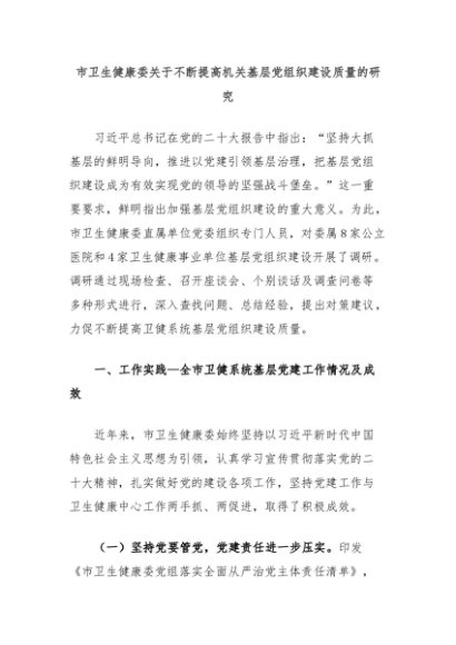 【七哥公文】2024年:市卫生健康委关于不断提高机关基层党组织建设质量的研究 (1)+更多免费公文+VX:QiGeGongWen2024