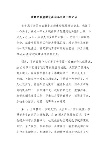 / 【七哥公文】2024年:在数字政府建设现场办公会上的讲话+更多免费公文+VX:QiGeGongWen2024